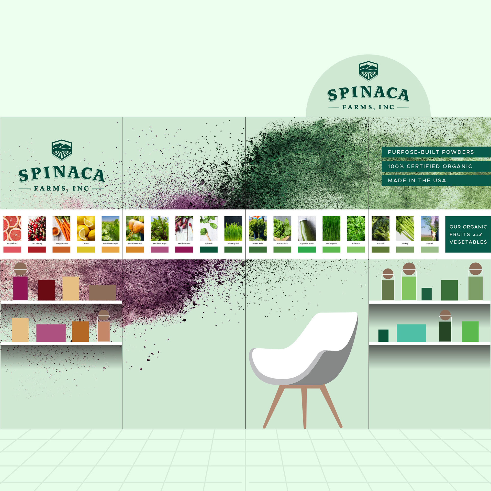 I've been Spinaca's designer since spearheading their rebrand in 2014. This has involved logo design, identity, print and web design, as well as brand activation at expos and trade shows. I also worked on their retail brand of organic produce — La Colline — creating everything from the name to the packaging and produce boxes.